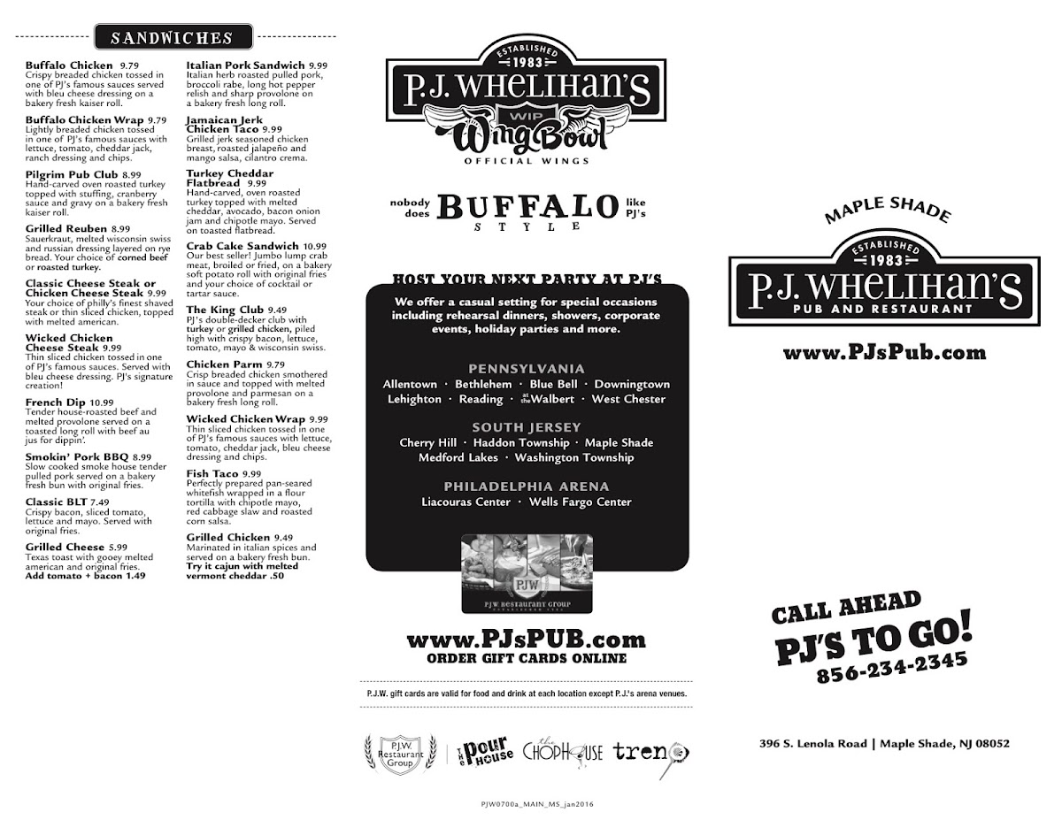 Welcome to P.J. Whelihan's Pub & Restaurant in Maple Shade, a delightful establishment nestled at 396 S Lenola Rd, NJ. This beloved local spot is not just a place to grab a bite, but an experience that incorporates warmth, quality service, and a vibrant atmosphere. With a cozy interior and open sunroom that invites guests to relax, it is perfect for everything from casual family dinners to lively business networking events.